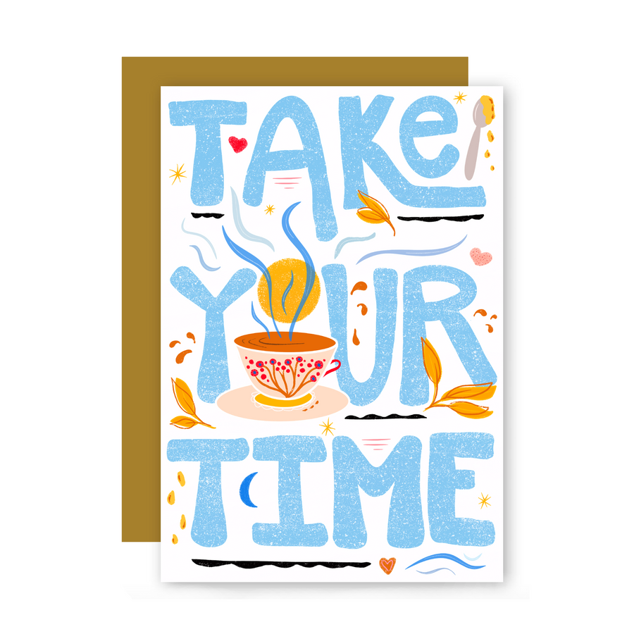 Spread loving calm this season with a beautiful tea time message! Hand-drawn with vibrant colors and cozy vibes, this card will help you send a warm greeting to family and friends.