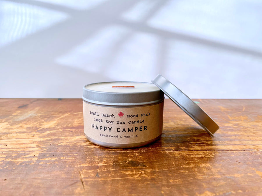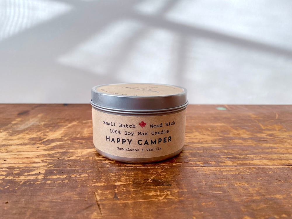 Super relaxing, scrumptiously aromatic, and good for both you and the Earth, this candles helps you shine bright with the "Happy Camper" scent of Sandalwood + Vanilla.