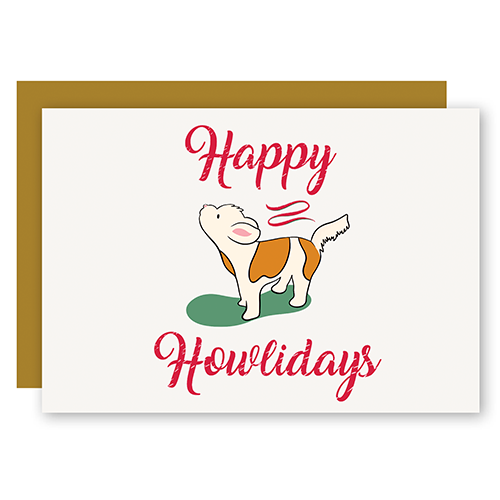 Spread fun this season with this punny holiday message! Hand-drawn with vibrant colors and good pup vibes, this "Happy Howlidays" card featuring an adorable dog will help you send a warm greeting to family and friends. Comes in a variety of colors, so you're sure to find whatever you need.