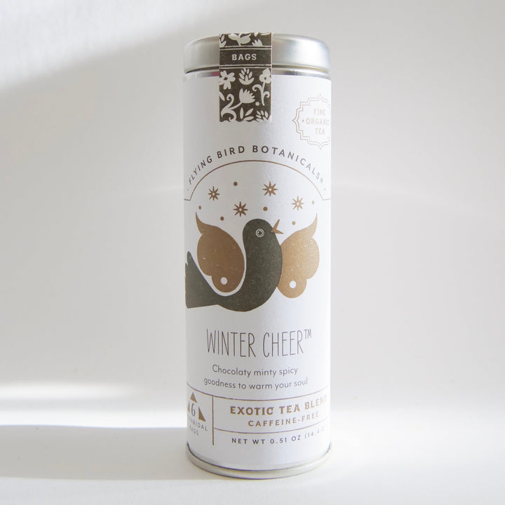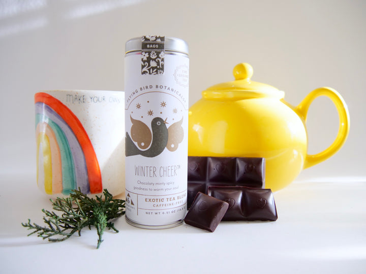 Cultivate delicious, rejuvenating moments with "Winter Cheer," a caffeine-free warming chocolatey, minty spicy blend!