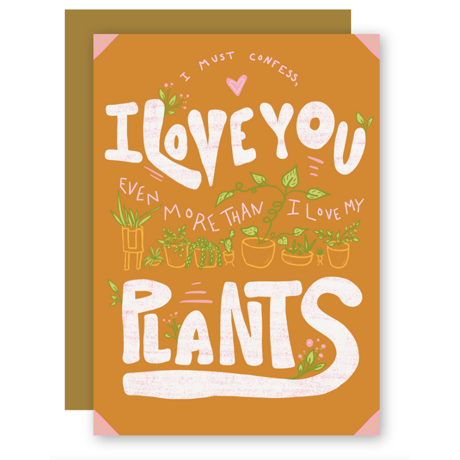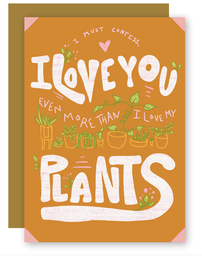 Show you care with this whimsical card illustrated by Julia Barry. Featuring hand-drawn houseplants and lettering that reads "I Must Confess, I Love You Even More Than I Love My Plants," this card is perfect for any occasion from Valentine's Day to a "just because" pick-me-up. These cards are blank inside, so you can personalize your own message!