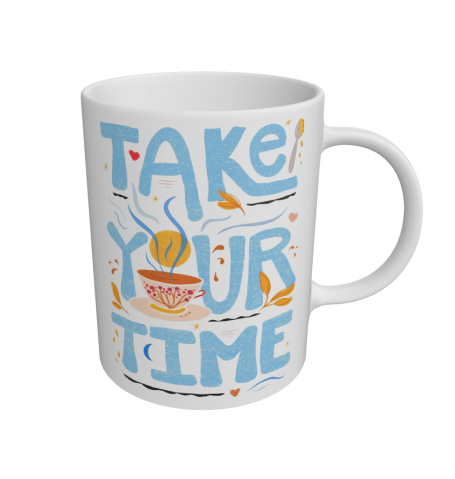 100% Natural Ceramic Mug, printed with water based inks and renewable energy. Recycled and recyclable plastic-free packaging.
