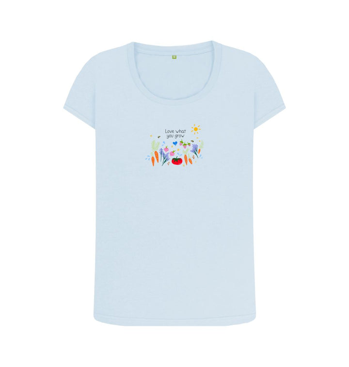 Sky Blue Love What You Grow \"Garden Party\" Scoop Neck T-Shirt (Adult)